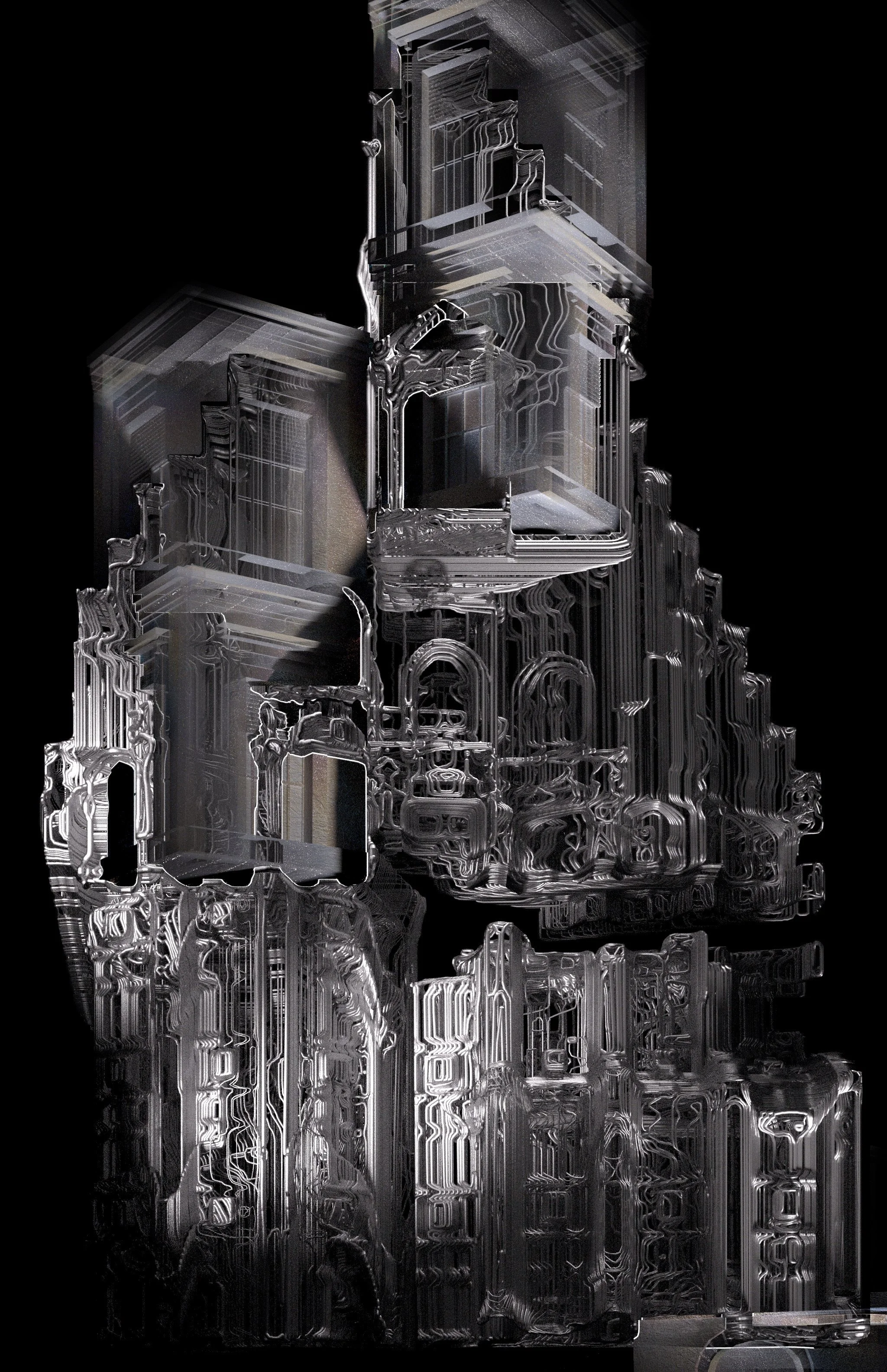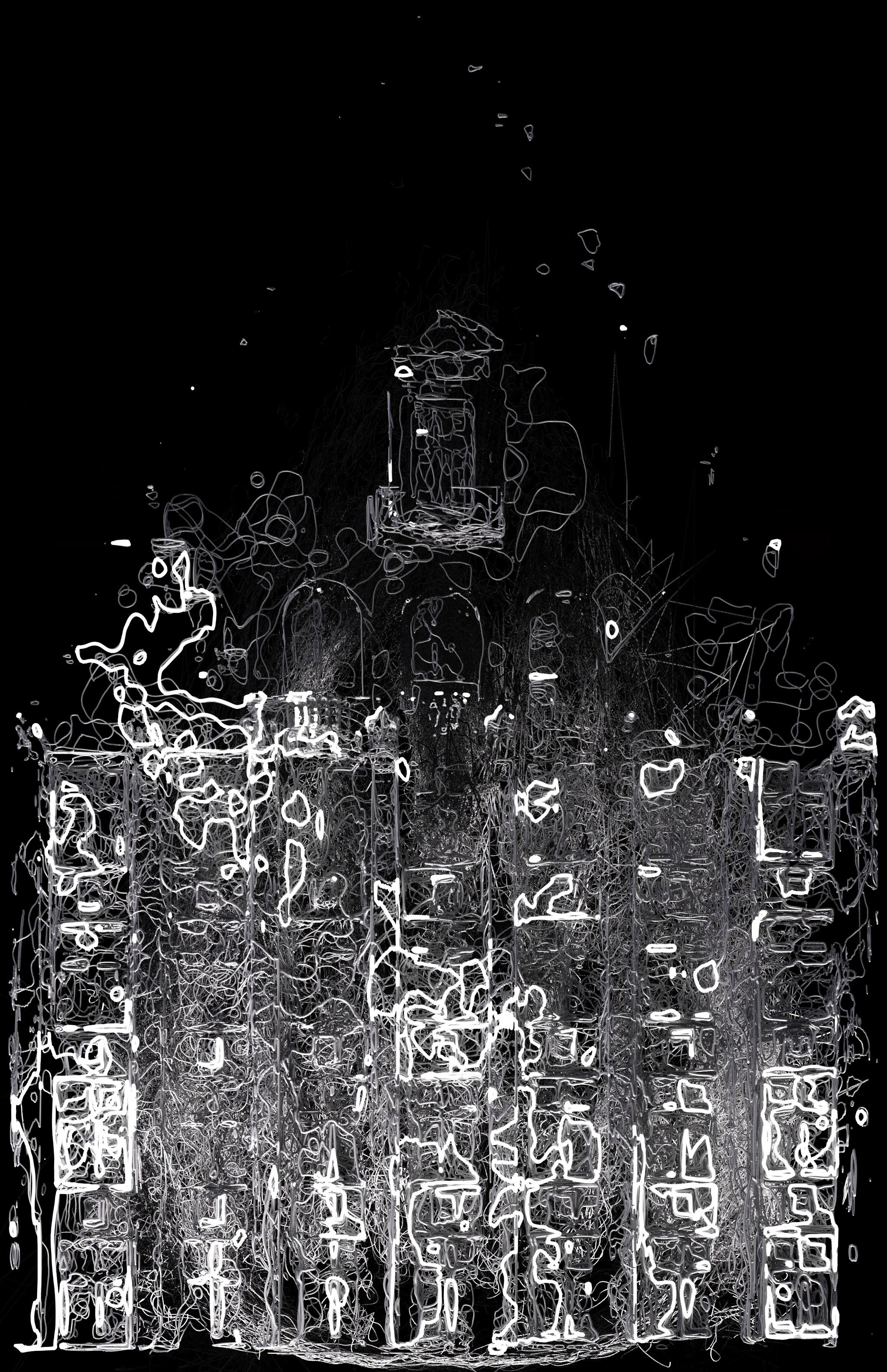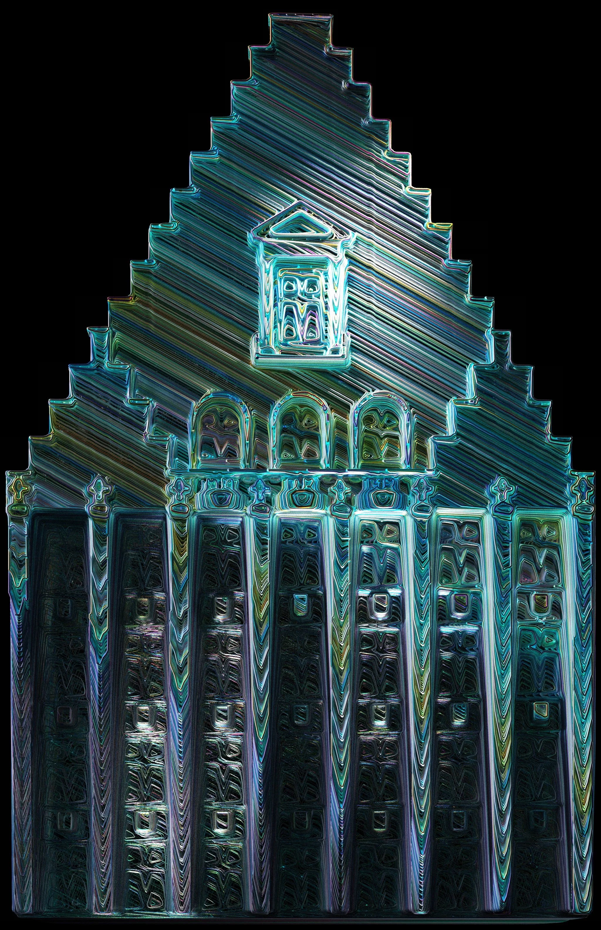 The architectural surface of the building is the cage we want to break out of using abstract experimental projection mapping techniques. The repetitive bassline defines the strict parameters in which we can operate and does not accommodate discomfort. The light of the projectors cannot penetrate the surface of the building, but the bass pushes the animations through, until at the end - the building is free.
